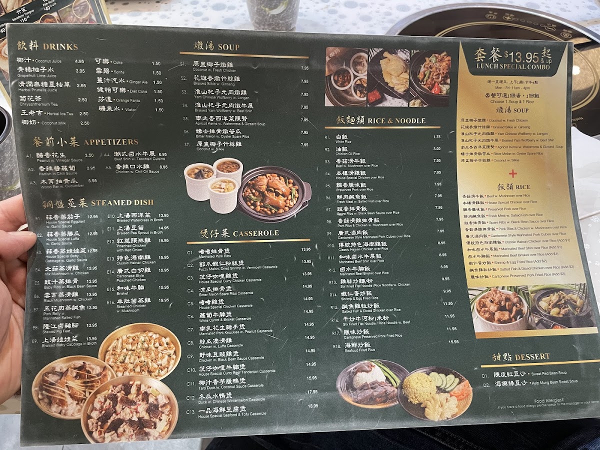 Drinks available all day range from traditional herbal teas like chrysanthemum and prunella juice, to soft drinks including Coke, Sprite, and ginger ale. The menu also offers unique beverages such as young coconut and coconut milk, which align with the restaurant’s signature coconut-based hot pot theme.